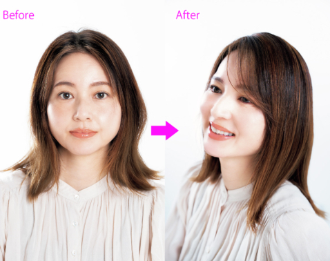 [S字ミディアムレイヤー]くびれシルエットで小顔見せ! 抜け感たっぷりなミディアムスタイル