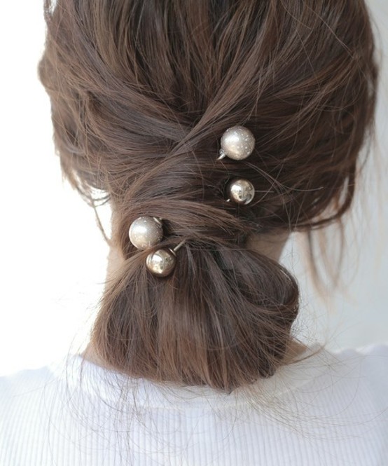 ③毛先を内側にくるっと丸めてピンで留めたら完成。