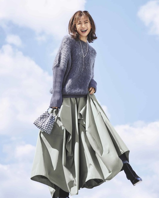 そして次に注目したいのは「大人が着やすく、おしゃれ見えする絶妙なカラバリ」。全部で5色あり、オフホワイト、ブラックに加え、ベージュ、ブラウン、ダークブラウンと大人が着たくなるような色味が充実。こっくりと深みのある発色なので、カジュアルなボトムスだけではなく、光沢のあるサテンやプリント入りなどのフェミニンなスカートとも馴染みがよく、コーディネートに取り入れやすくなっています。