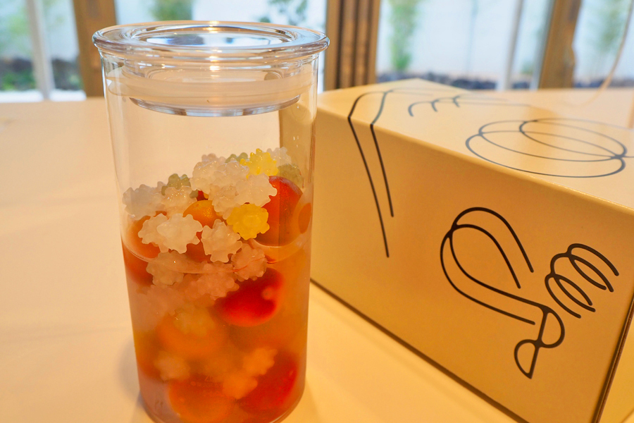 今回選んだ梅は、サクランボのような華やかな味わいのパープルクイーン。産地の和歌山から県外に苗木を出すことができないという、あまり流通しない貴重な梅です。小粒でかわいらしく、漬けるとほんのりピンク色に色づくのが特徴。そこに見た目も愛らしいこんぺい糖と、バニラのような甘い香りのホワイトラムを合わせました。