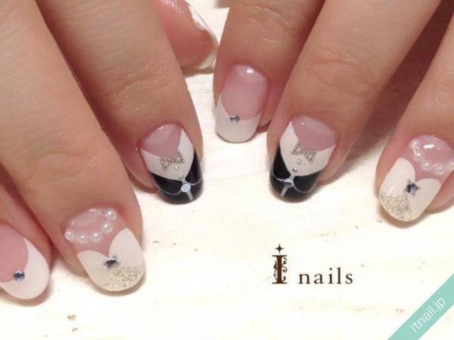 半透明のホワイトは、透け感があって涼しげ。さりげなく水色が入っているのも爽やかです。シェルパーツを使うと、より夏らしいネイルになります。