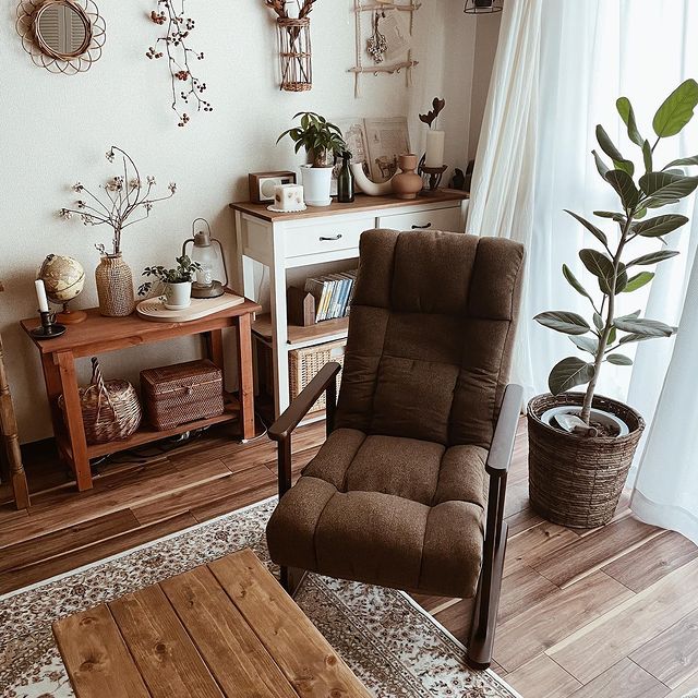 古民家風のインテリアにするためにダークブラウンの家具や棚板をチョイスされています。