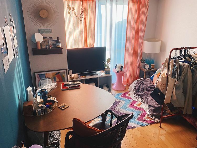 インテリア好きだけあって可愛い雑貨がたくさんありますが、ゴチャゴチャとして整っていない印象のキッチン。「えっ、そのまま使うの??」と聞かずにはいられない一升瓶に入ったままの醤油や調理酒などの調味料、引き出しの取っ手に無造作に掛けられたゴミ袋、使いっぱなしの調理器具など、お世辞にも収納上手とは言えない状況。これでは料理が捗らないのも頷けます。