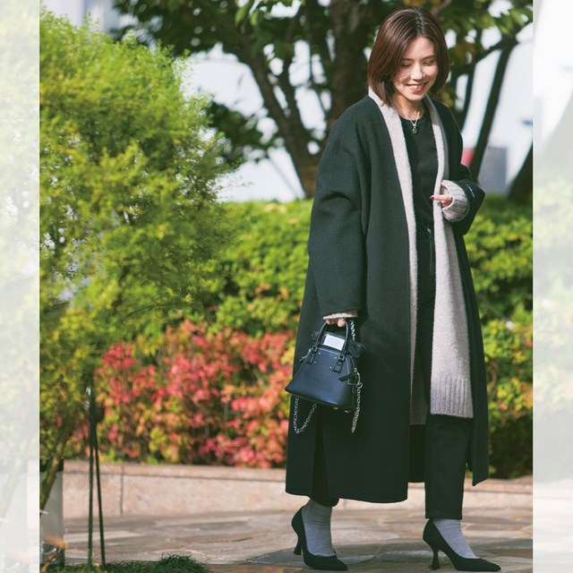 ワンカラーのシンプルコーデに、ブラックのコルセットでちょっとスパイシーな仕上がりに。レディな足もとが、女っぷりをぐっとあげてくれます。