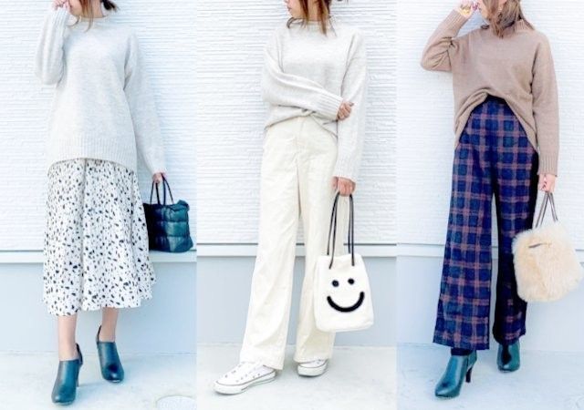 ロングニットワンピースの下に取り入れれば、ゆる感のあるスタイリングに。女性らしくリラクシーなスタイリングを楽しみたいときには、プリーツパンツがぴったりです。