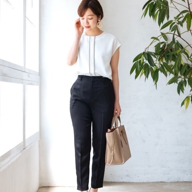 ふくらはぎの太さが目立ってしまうので、足首が見えるヒールを合わせてスッキリ見せましょう。