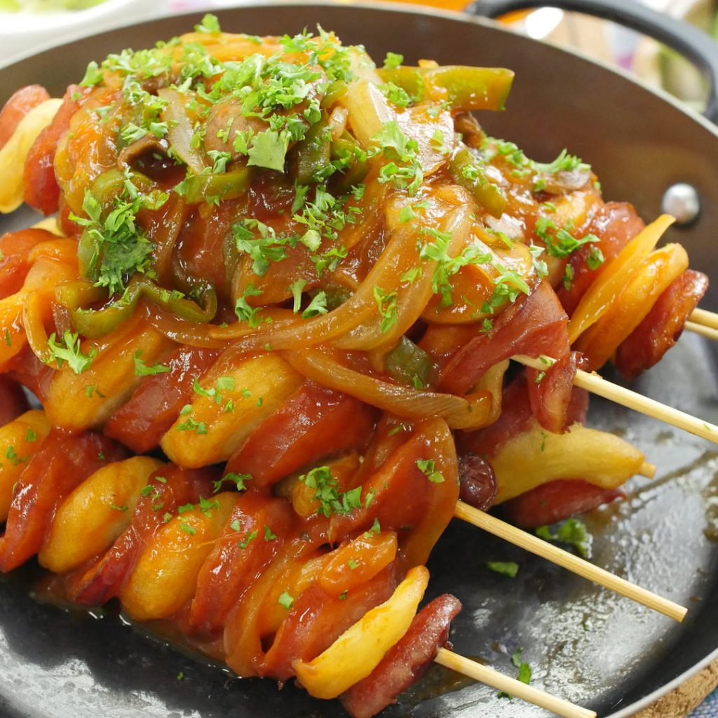 「くるくるアメリカンドッグのナポリタンソース」のレシピと作り方を動画でご紹介します。じゃがいも入りのもちもち生地をソーセージにぐるぐる巻きつけて……具だくさんのナポリタンソースをたっぷりとかけた欲張りなひと品です!