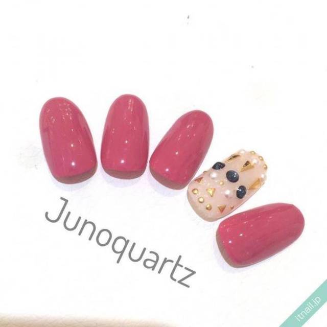肌に馴染みやすいヌーディーピンクは、全面塗りでも派手になりすぎないのがポイントです。手の血色がよく見えるので健康的でヘルシーですよね。大人カラーもアクセントの星柄ラメで遊び心がプラスされます。