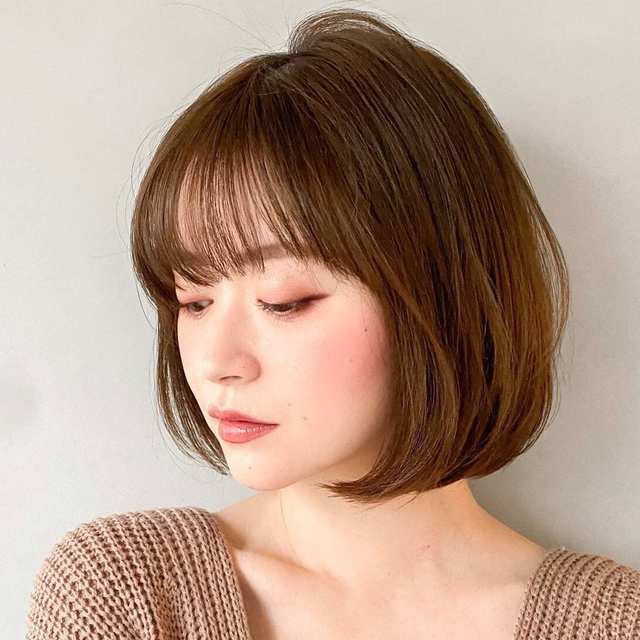⑥前髪を中ほどから毛先まで内巻きにして完成。