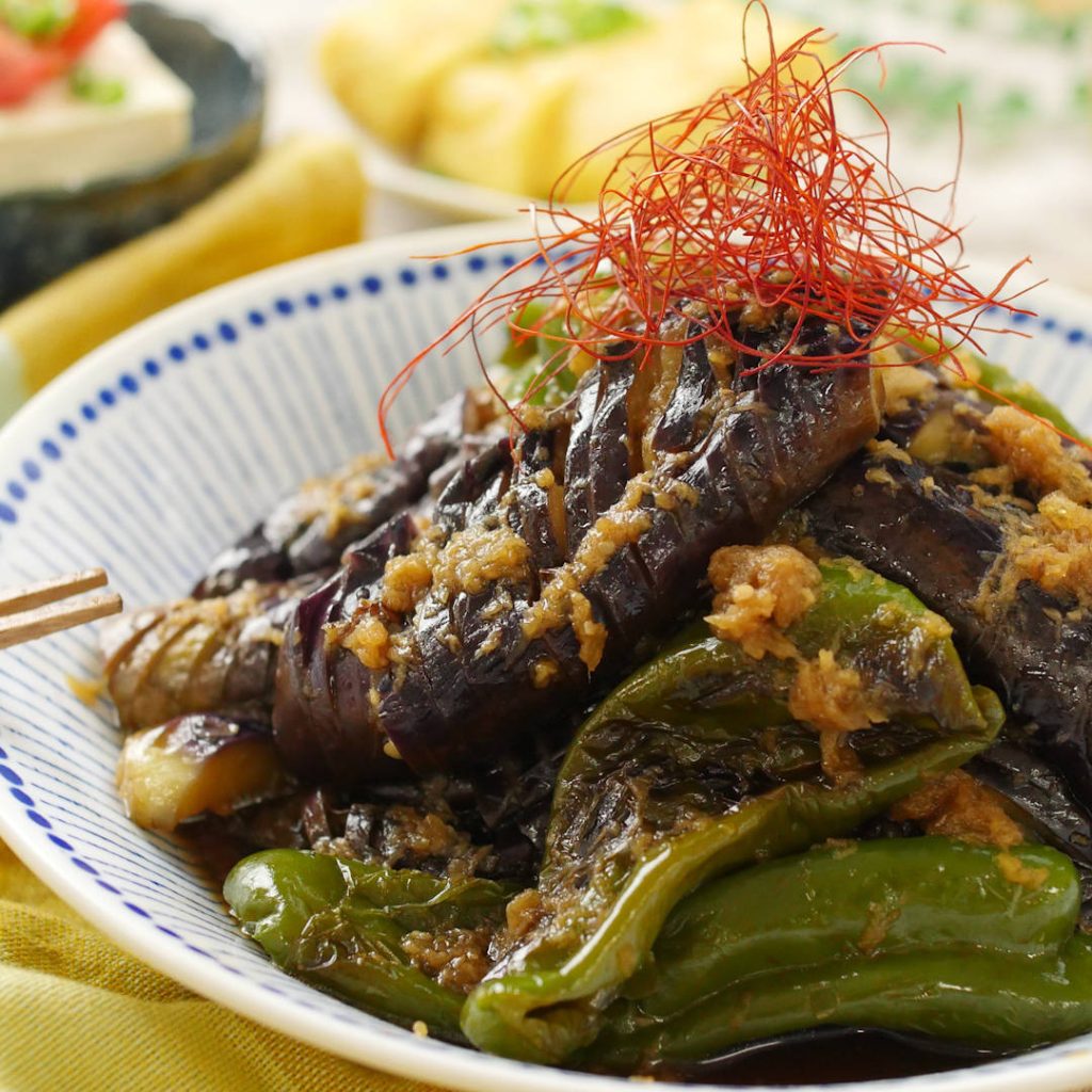 「なすのおろし生姜和え」のレシピと作り方を動画でご紹介します。くたくたになるまで蒸し焼きにしたなすとピーマンを、おろししょうがたっぷりのポン酢だれで和えました。しょうがの辛味が後を引く、夏野菜のシンプルなひと品です。