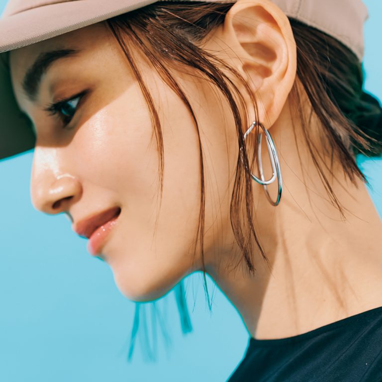 幼くなりそうな高めの位置のポニーテールも、ねじりを入れてルーズにほぐすことで、ニュアンスのある大人なヘアスタイルに仕上がります。大ぶりのイヤリングがよく映えるアレンジですね。