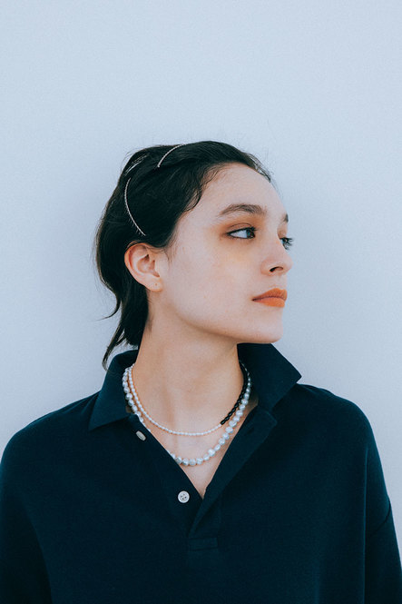 ゆったりとした着丈のため、抜け感のあるコーデに。小さくシンプルなドット柄なら、トレンドを気にせず着られます。