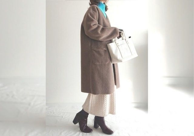 冬の乾いた空気に映える、洗練モノトーンコーデ。ロングコートと黒スキニーの重さを、随所に取り入れた“白色”で払拭。コーデが重たいなと感じたら、こんな風に“色”で抜けを作ると上手くいきます。