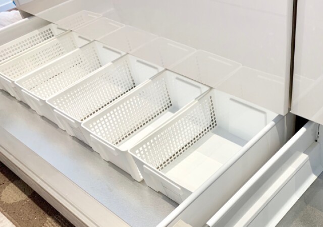 よく使う調味料をひとまとめにして使いやすい位置に設置しておけば、毎日の料理もスムーズにできますよね。壁面収納して台の上に直接置かないから、汚れてもお掃除しやすいキッチンになります。