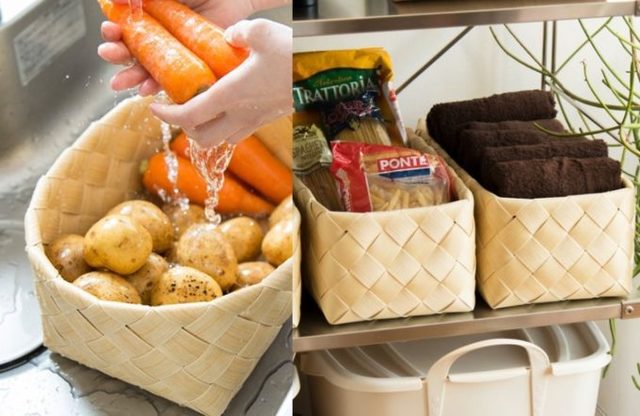 重なるラタン長方形バスケットも無印良品で人気の収納グッズですね。