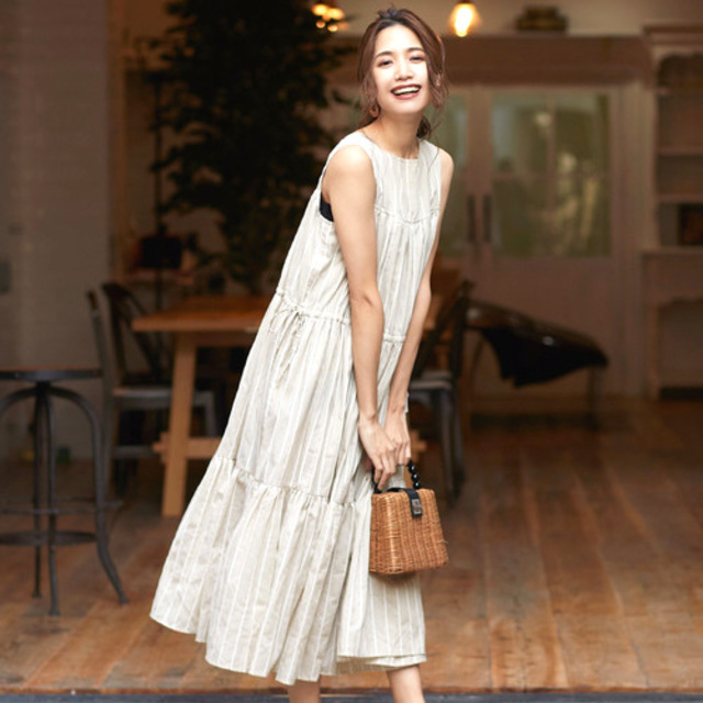 トップスがオーバーサイズなのでウエストがゴムタイプのテーパードパンツにしてもゴム部分が隠れて見えませんし、これならラクチンにおうち時間、ご近所時間を過ごせそう!