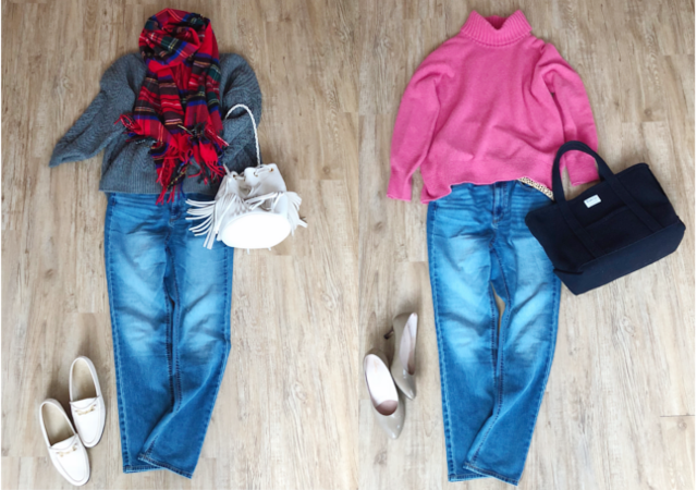 ニット&カーデをセットにしてアンサンブル風に