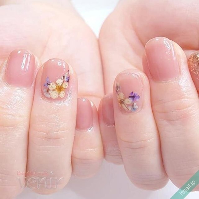 塗りかけ風の抜け感のあるべっ甲デザインで、指先がより大人っぽく変身します。ベースがクリアなので伸びても目立ちにくいのもズボラさんに嬉しいポイントですね。華奢に見えるお花アートも遊び心を感じさせてくれます。
