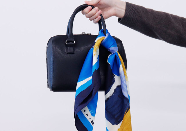 マフラーのように首に巻いたり、肩掛けにしてストールのように使うのも人気の合わせ方です。使わない時は、バッグからチラ見せさせるとコーディネートの差し色やポイントにもなっておしゃれに見えます。