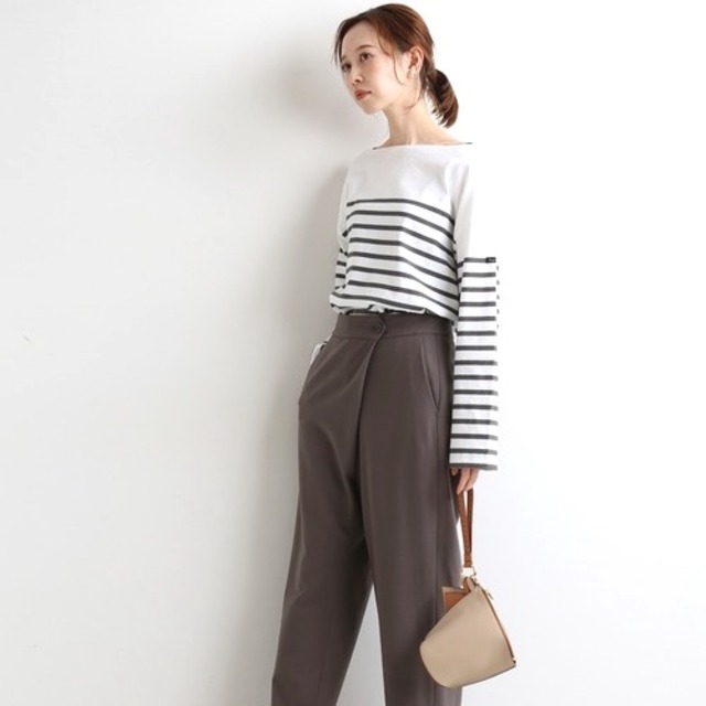 「洒落感のあるブルーグリーンで旬度の高い着こなしに。タックの落ち感もエレガント」(東原さん)。ベルト幅がしっかり太めなので、ウエストまわりをすっきりと見せてくれる。¥19000/エリオポール代官山(エリオポール)