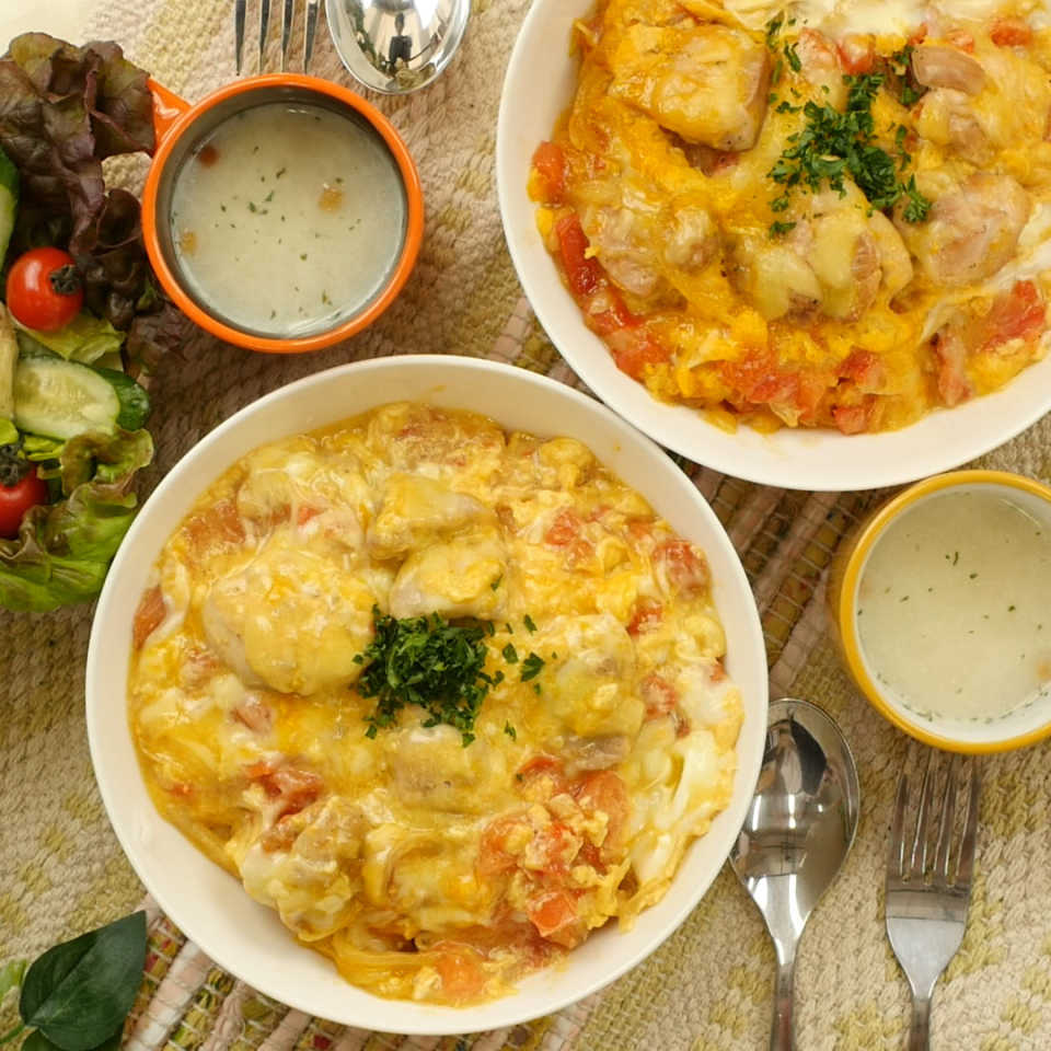 今回は「親子丼」をイタリアン風にアレンジした簡単レシピをご紹介します!いつもの親子丼にトマトとチーズをプラスすれば、これまでにないトロトロ加減に……!酸味とコクが生み出す新体験な味わいを、ぜひご家庭で楽しんでみてくださいね♩