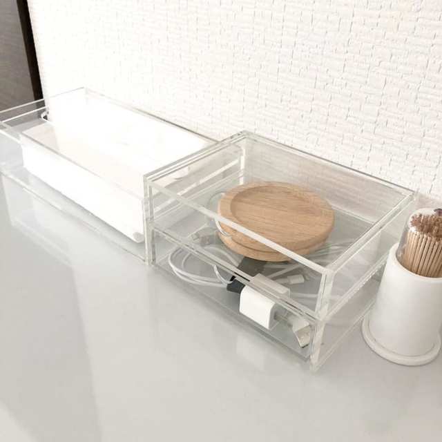キャビネットは『パシフィックファニチャーサービス』で、印象的なデザインのミラーをアート的に配置。どちらも以前の家から愛用していたもの。