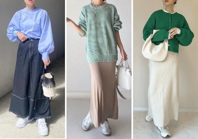 ワイド系ボトムスで足周りをカバー