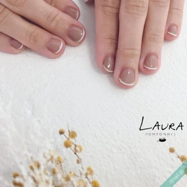 シンプルなクリアネイルをパッと華やかに見せてくれるのが、小粒のゴールドラメ。全体に塗るだけでなく、爪先に細ラインで塗ることで抜け感が出ますね。計算されたシンプルさが華奢で守ってあげたくなる指先を作り上げてくれます。