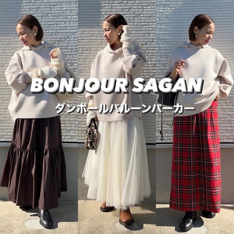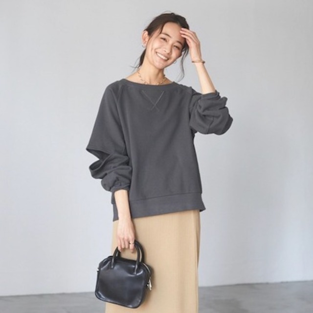 ふんわりとしたドルマンスリーブが女性らしいセーター。袖にボリュームがありますがショート丈なので野暮ったく見えません。素材感・デザインともに高見えするアイテム。