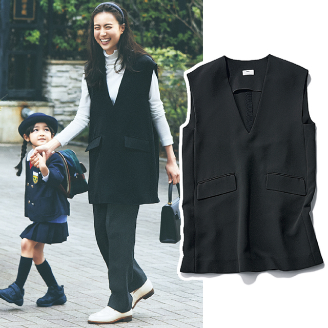 ワイドスリーブが存在感大なトップスにユニクロの黒パンツを合わせて、さりげなくプチプラをMIX。主役級アイテムの引き立て役として着こなしに混ぜることで、おしゃれ見えします。