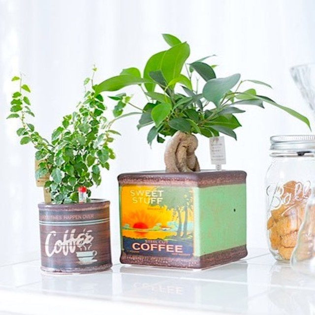 同じく壁に付けられる家具に引っかけるアイデアです。グリーンインテリアを挟んで飾ると、家にさりげなく爽やかな雰囲気を取り入れることができますよ。