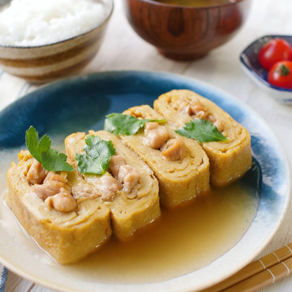 「親子たまご焼き」のレシピと作り方を動画でご紹介します。めんつゆで甘辛く炒めた鶏もも肉をたまご焼きの中に閉じ込めて、とろとろの和風あんをたっぷりとかけました。お肉入りでボリューム満点!夜ごはんのおかずやおつまみとしても重宝しますよ♪