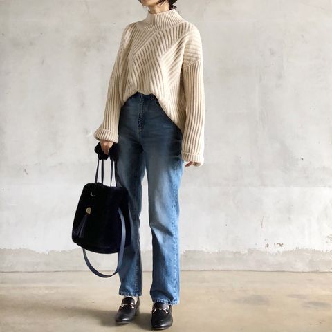 冬トレンドのゆるっとしたニットなら、ウエストをINしてブラウジングするとスタイルアップしたコーデになります。リブニットなら縦ラインを強調してよりスタイルも良く見えるでしょう。