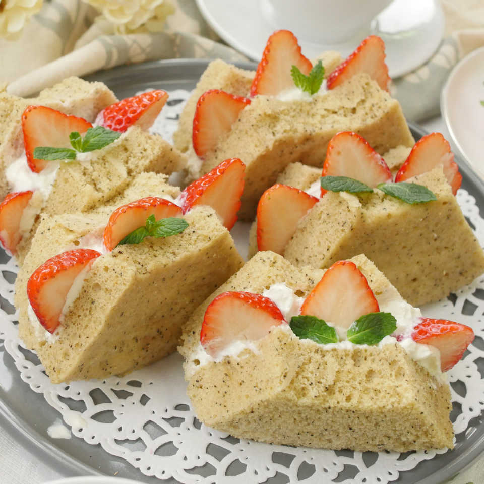 今回は、レンジで時短・簡単にできる「シフォンケーキ風サンド」のレシピをご紹介します♩紅茶が香るふわふわもっちりのシフォンケーキに、生クリームとフルーツを挟めば、あっという間にかわいいスイーツができあがりますよ!