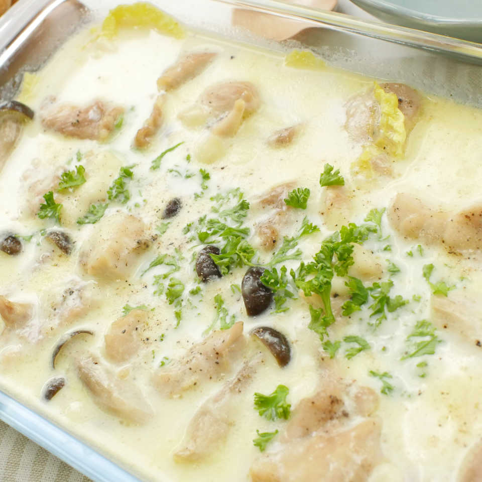 冬の食卓にぴったり、鶏肉のクリーム煮♩お鍋がなくてもできちゃうの……?はい、レンジのみで、おいしくできちゃうんです!どうせお鍋で作ったお鍋で作った方がおいしいでしょ……?いいえ、レンジの力を侮ってはいけません!!