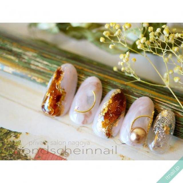 ヌーディーカラーの組み合わせは気分のあがるデザインです。シンプルだからこそセンスが現れるオフィスネイルも、ツイード柄を施すことでセンスアップしますね。ピンクネイルのマンネリを回避したい人にもぴったりです。
