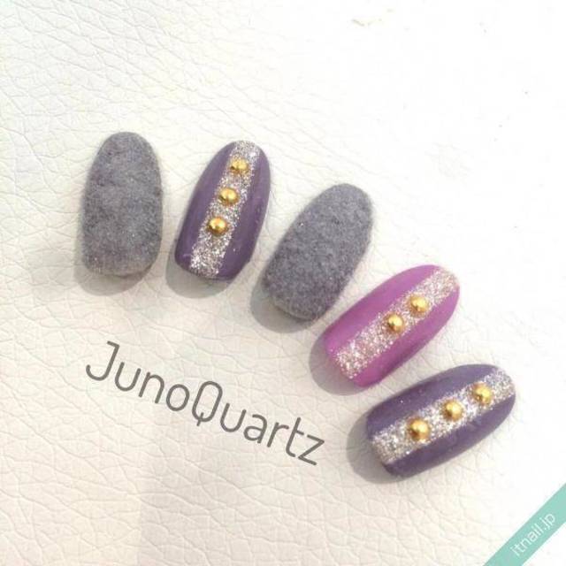 冬ネイルを少し華やかにしたいときは、ストーンやフレークを乗せてみましょう。落ち着いた色同士の組み合わせなら、派手過ぎずちょうどいいバランスです。