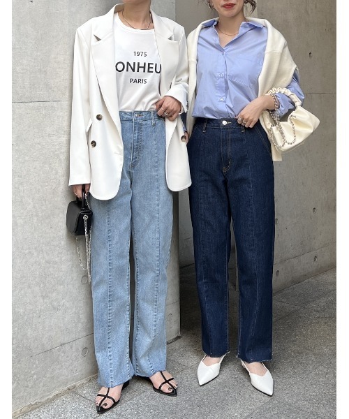 シンプルなセーターなので、小物と合わせることで雰囲気を変えられます。大ぶりのピアスに、きらびやかなリングをつければ、上質なコーデに格上げ。シンプルコーデもハイセンスに見せられます。