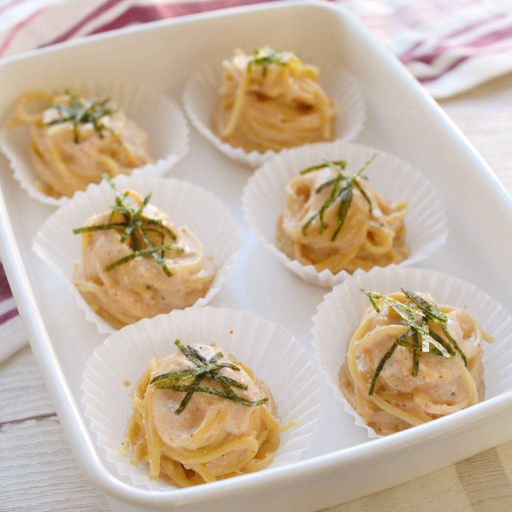 【材料】ひとくち明太クリームパスタ (ミニカップ6〜8個分)