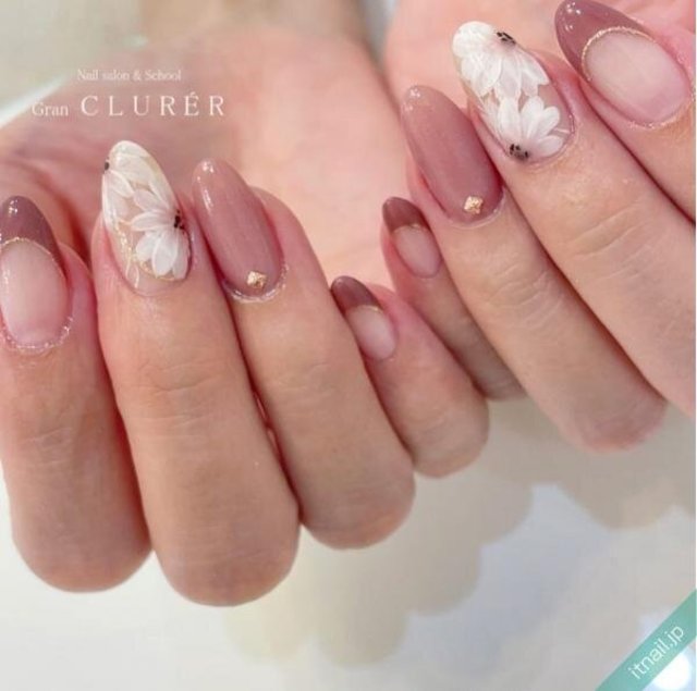 根元に向かって透明になるようにグラデーションを施して透け感たっぷりに。根元が透明なので、伸びてきても目立ちにくく、メンテナンスも楽チンです。