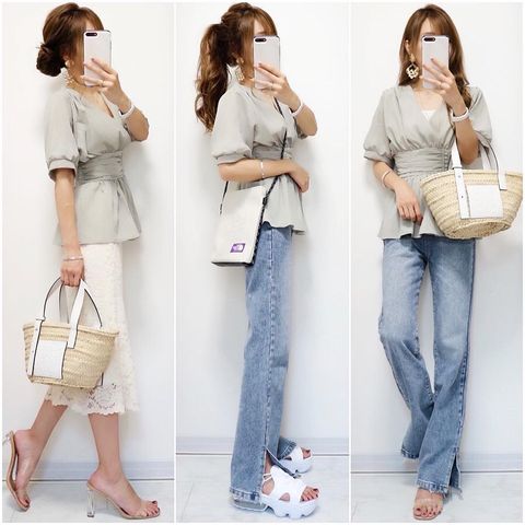 素材感や透け感がちょうどよく、コーディネート次第でキュートにもセクシーにもなれる優秀ブラウスです。レイヤードスタイルにも◎。