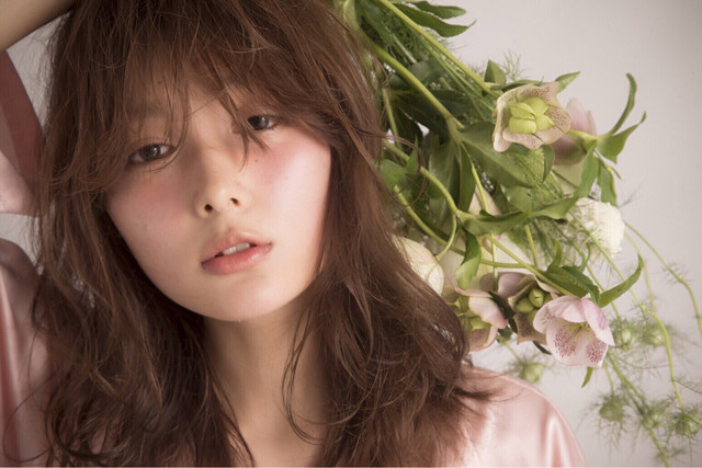 ゆる巻きウェーブとリップバングでアンニュイな雰囲気に。耳かけをしても顔周りにリップバングが残るので小顔効果が得られます。