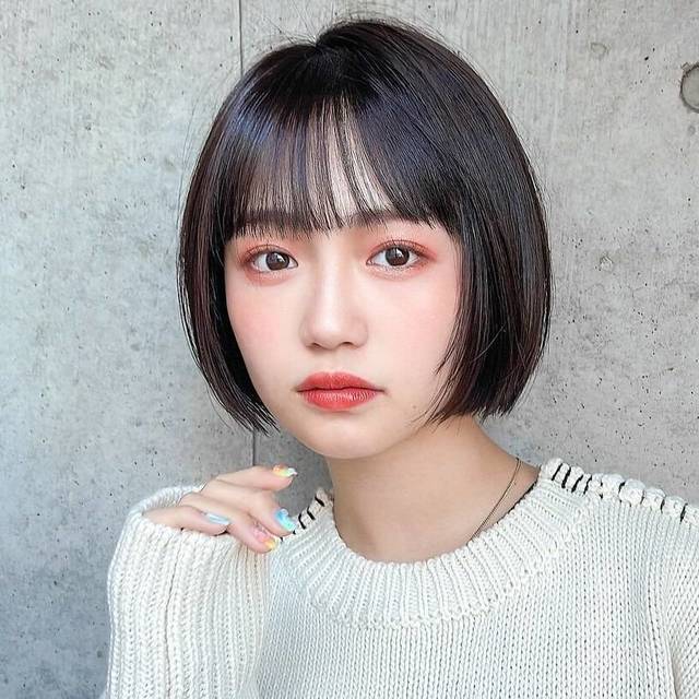 柔らか質感のショートボブにリップバングをプラスすると可愛らしい印象に。女性らしさがアップします。
