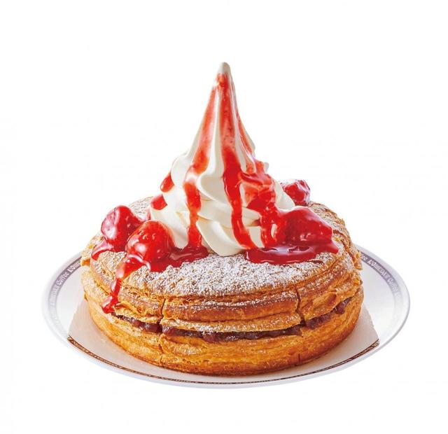 2018年1月16日(火)に発売された人気の「セブン×コールドストーン」のコラボ商品。パンケーキのようなブッセ生地に、カスタードアイスとたっぷりのメープルソースを挟んだアイスケーキです。