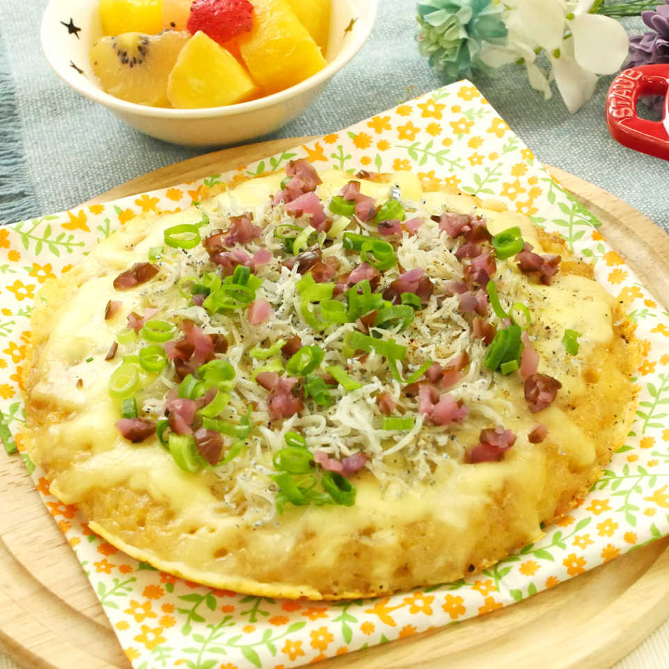 ご飯で簡単にピザが作れる「しらすと卵かけご飯(TKG)のライスピザ」レシピをご紹介!フライパンで卵かけご飯をこんがり焼いたら、しらすとチーズ、小口ねぎをたっぷり散らしてできあがり!香ばしいおこげと、カリカリ食感が楽しめるひと品です♩