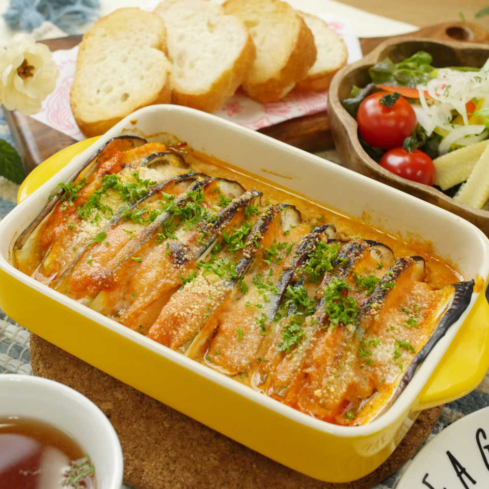 和と洋が融合した特製ソースでいただく「鶏肉となすのオーロラ味噌ミルフィーユ」レシピをご紹介します。重ねて並べて焼くだけなのに、豪華で見た目もおしゃれな料理に仕上がりますよ!おもてなし料理にぴったりですよ♩