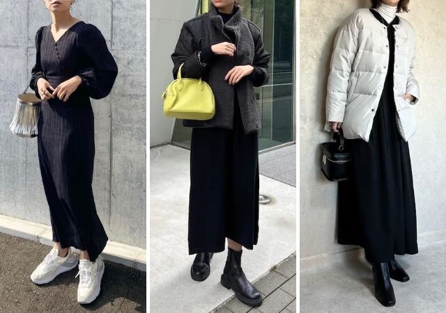 スキニーみたいなシルエットだけどストレスフリーな、いいとこ取りのボトムス。ワンピースやチュニックの下にはくのもちょうどいいです。