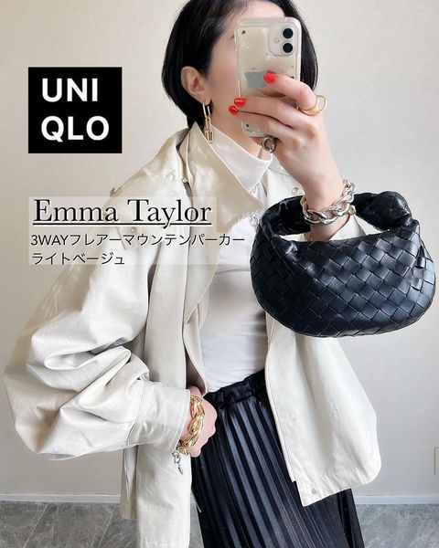少しずつ春めいてきたモノトーンコーデの差し色に赤いバッグをオン。白いスカートスタイルも、赤色バッグで華やかさが増します。