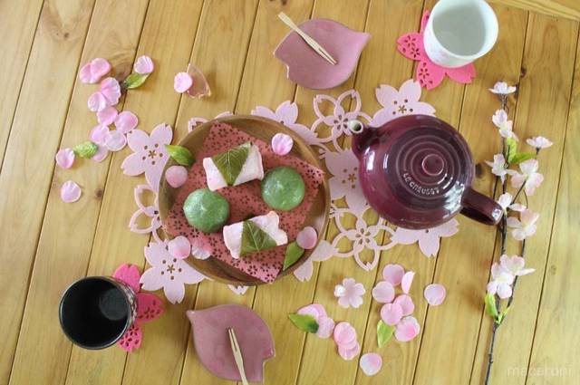 桜餅や草団子のような和菓子には「さくらグッズ」との相性が抜群ですよ!テーブルを桜でいっぱいにしましょう♪ 桜が型どられた「テーブルセンター」を一枚敷くだけで、インパクト大な食卓になりますよ。