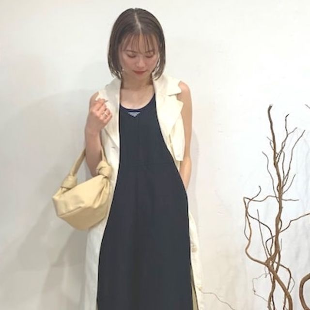 シャツワンピをアウターがわりに羽織って春を先取り。カチッとしたカゴバッグもアクセントになって可愛いですね。